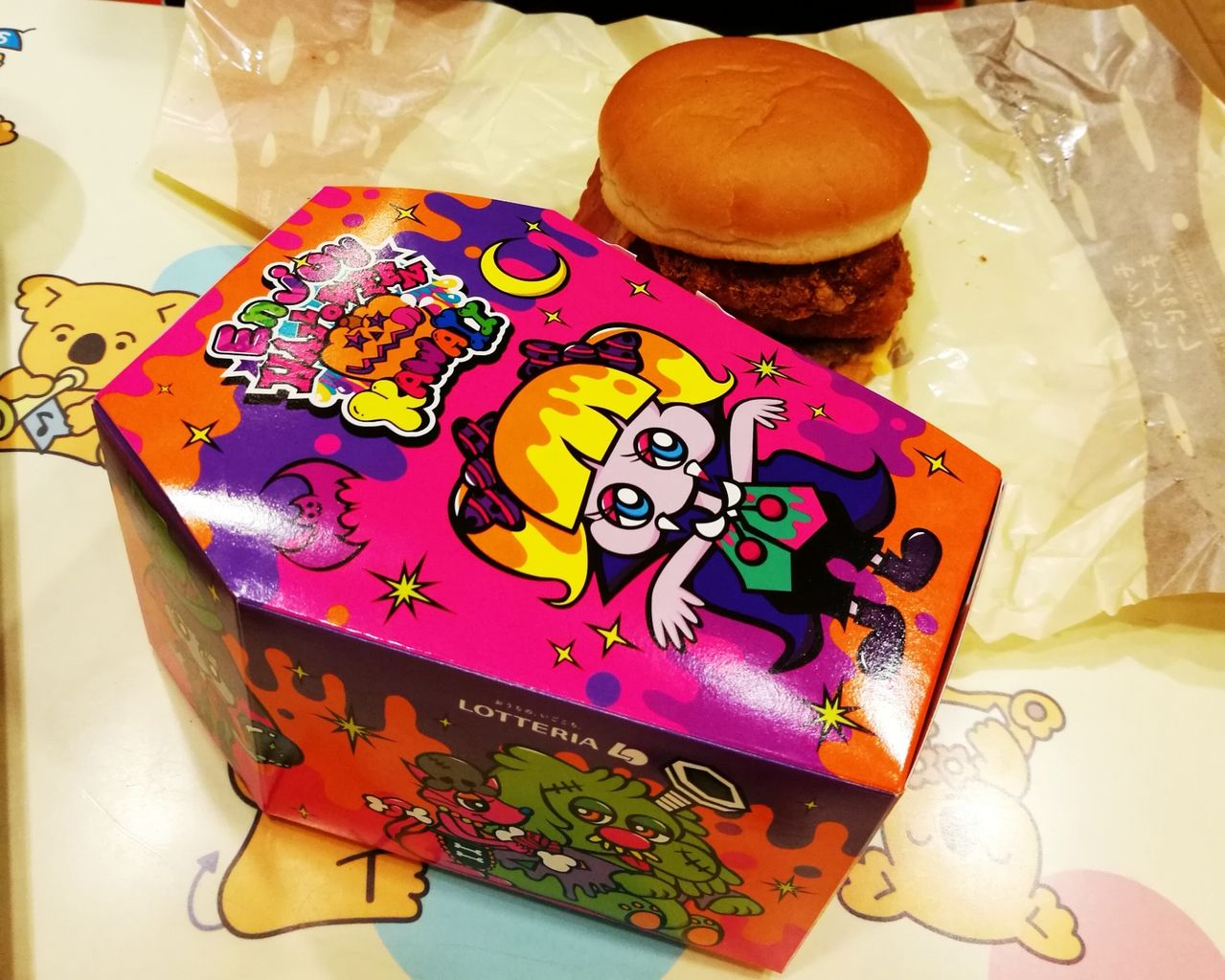 旦那の注文したのはこちら、ポテトS付き800円。これらハロウィンパッケージ商品は無くなり次第終了だそうです。![[画像:fec18467-s.jpg]](https://livedoor.blogimg.jp/tenkinikuji/imgs/f/e/fec18467-s.jpg)