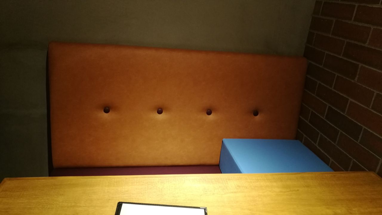 席は幼い子連れに嬉しいソファー、子ども用に座高を上げられるクッションもありました。